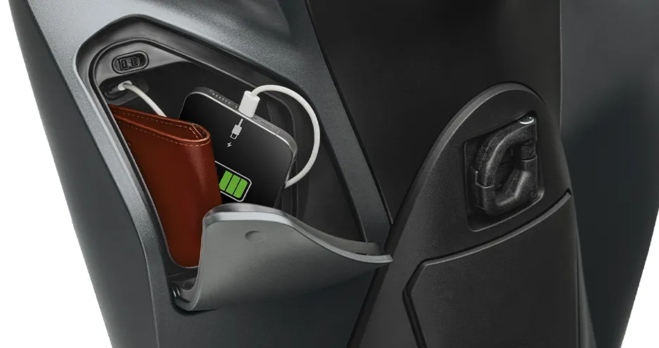 Hộc đựng đồ phía trước rộng rãi đã được trang bị cổng sạc USB type C tiện dụng. Đây là một nâng cấp đáng giá, cho phép sạc pin điện thoại nhanh chóng khi cần thiết.