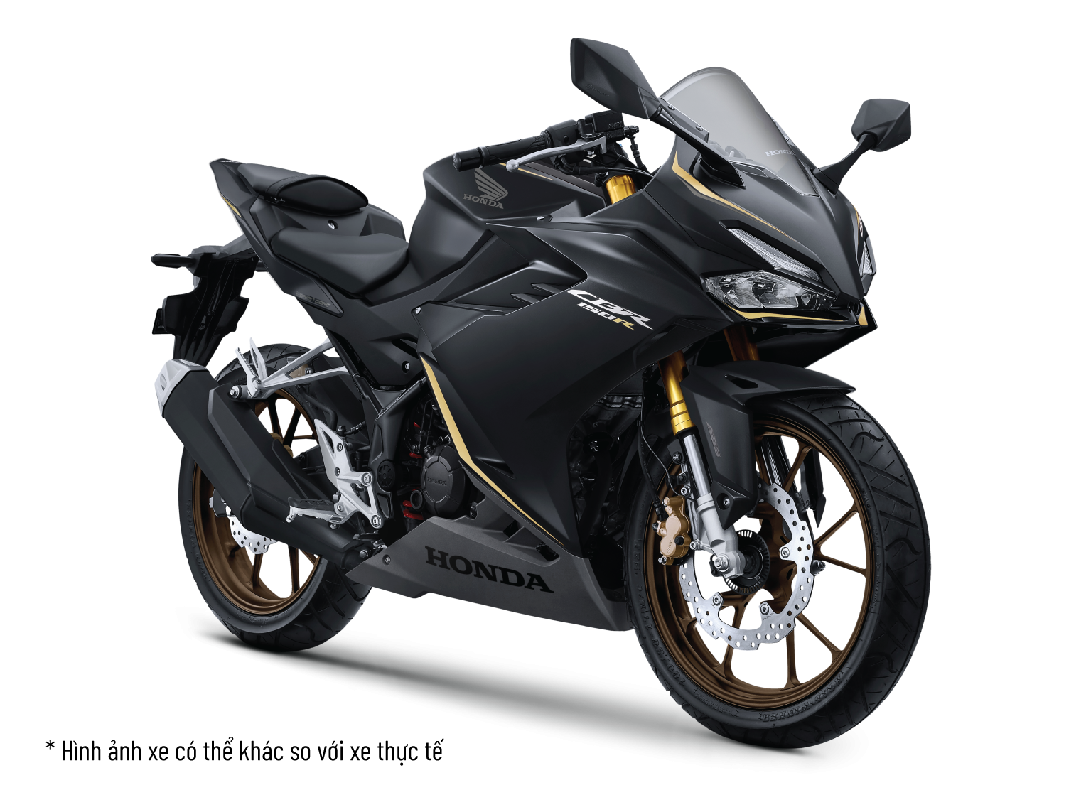 CBR150R khẳng định là mẫu xe côn tay thể thao dành cho thành thị với trang bị giảm xóc hành trình ngược. Phần sơn mạ vàng giúp toàn bộ phần trước của xe mang hình ảnh cứng cáp, cao cấp.