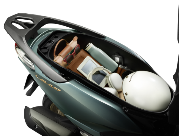 Dung tích chứa đồ lên đến 37 lít nhờ thiết kế thông minh giúp mở rộng tối đa không gian mặt phẳng đáy và diện tích vòm dưới yên xe, cho phép chứa 2 mũ bảo hiểm cả đầu cỡ lớn cùng nhiều vật dụng cá nhân thiết yếu.