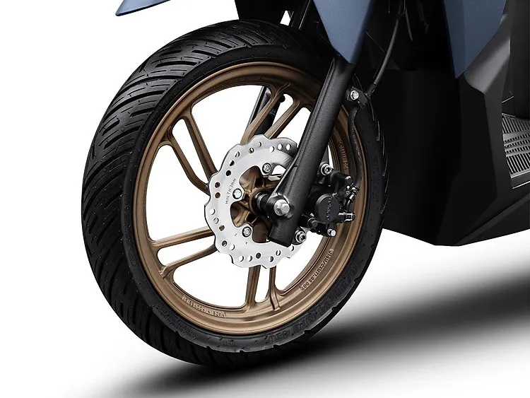 Phanh đĩa phía trước lượn sóng, bộ vành với thiết kế thể thao, đi cùng lốp xe không săm kích thước rộng giúp xe ổn định & bám đường tốt, mang lại sự thoải mái & linh hoạt hơn cho việc di chuyển hàng ngày.