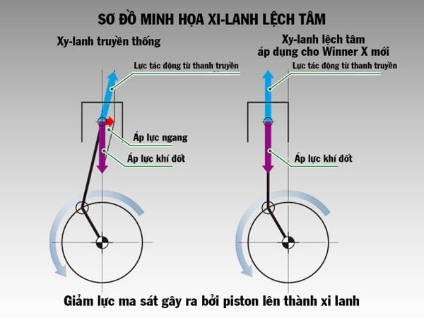 Động cơ PGM-FI kết hợp cùng công nghệ giảm thiểu ma-sát như xi lanh lệch tâm, váy piston được chế tạo với các đường vân thô và phủ lớp molybdenum, cò mổ con lăn và ống lót xi lanh với kết cấu giảm ma sát giúp WINNER X có công suất vượt trội và tiết kiệm nhiên liệu tối ưu.